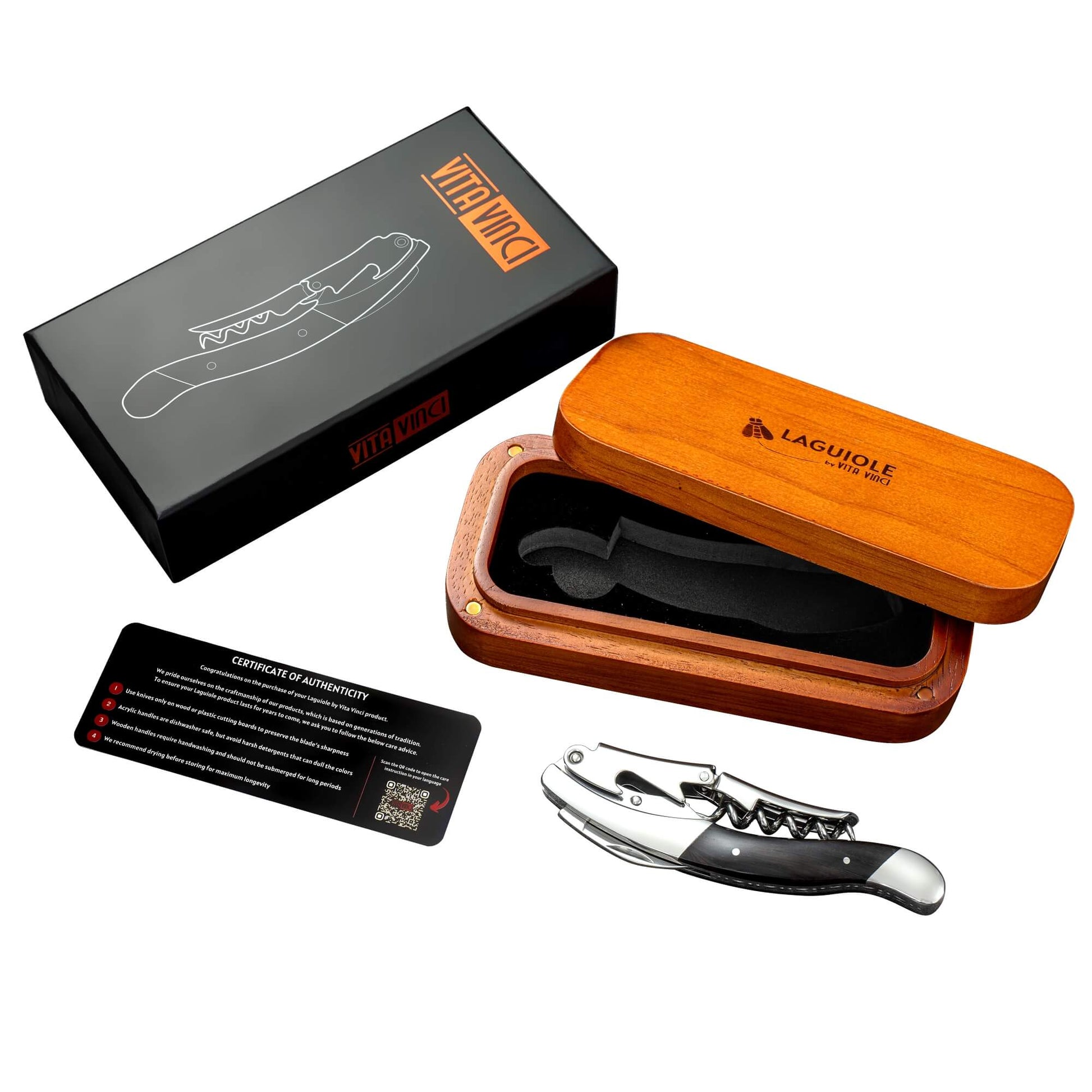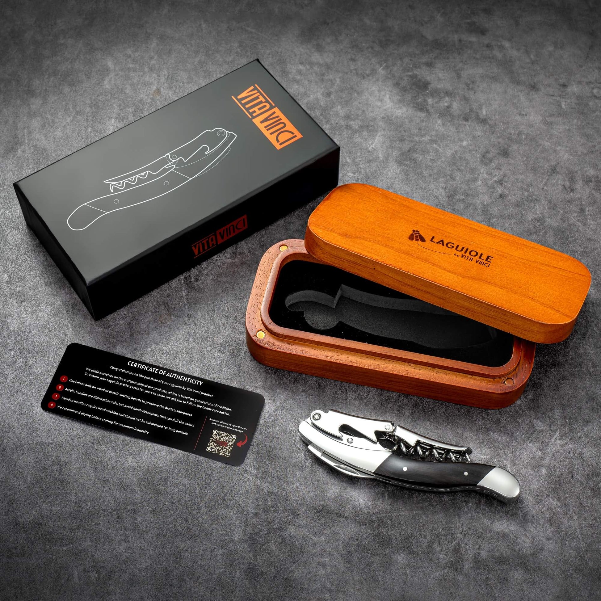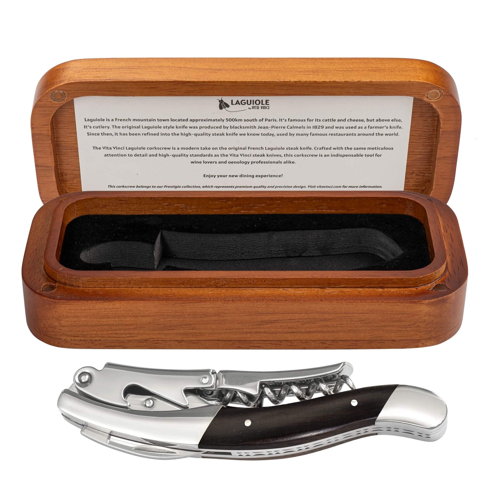 Vita Vinci Laguiole proptrækkeren er en moderne fortolkning af den originale franske Laguiole steakkniv, fremstillet med samme omhyggelige opmærksomhed på detaljen og høje kvalitetsstandarder som Vita Vinci steakknivene. Den er et uundværligt værktøj for vinelskere og fagfolk inden for ønologi.
